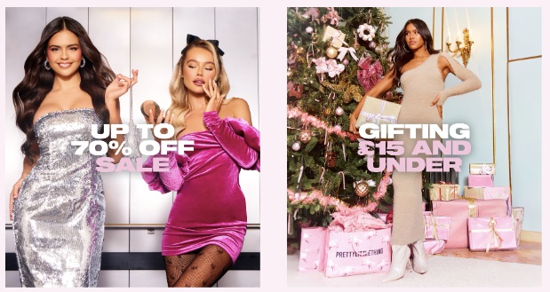 Faites vos achats à PrettyLittleThing.com et saisissez cette promo pour économiser jusqu'à 70% de réduction sur votre commande d'articles en solde sur l'ensemble du site.