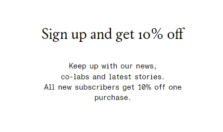 Les nouveaux clients peuvent bénéficier d'un bon de réduction de 10% sur Stories.com s'ils s'inscrivent à la newsletter.