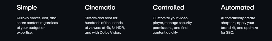 Choisissez VIMEO.com et vous aurez accès à des avantages incroyables. Vous ne serez pas seulement accueilli par une interface moderne et facile à utiliser, mais vous serez également accueilli par les meilleures solutions pour les entreprises, les petites entreprises, les professionnels de la création et les organisations d'éducation. En plus de tout ce qui précède, vous aurez également accès à des ressources utiles, notamment l'école de la vidéo, des guides et des outils, des événements et des expériences, ainsi que le blog officiel.